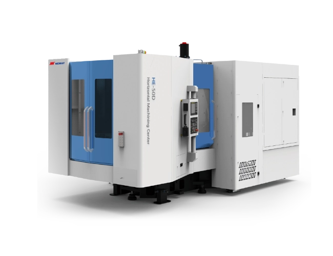 Horizontální obráběcí centra řady HE nabízejí vysokorychlostní ergonomické a pokročilé uspořádání, které zvyšuje komfort obsluhy a efektivitu práce. Rám s dvojitým sloupem zajišťuje mimořádnou tuhost a stabilitu při obrábění. Stroje jsou vybavena vysoce přesným otočným stolem, který umožňuje spolehlivé a přesné obrábění z více stran v jediném upnutí, velice přesné elektrovřeteno a lineární vedení ve všech třech osách.