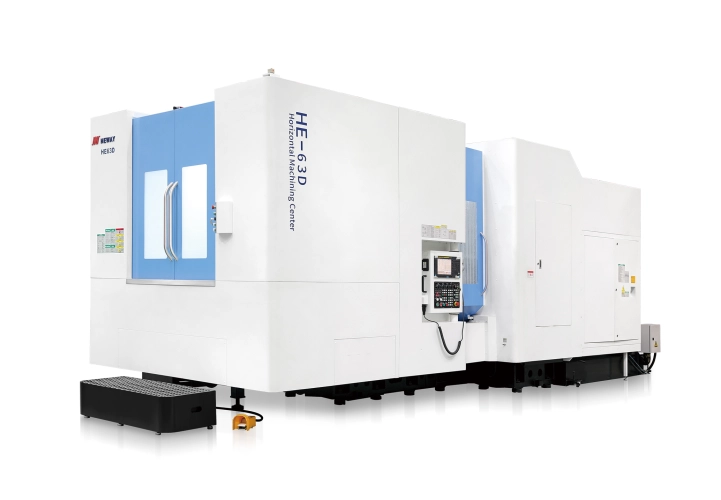 Horizontální obráběcí centra řady HE nabízejí vysokorychlostní ergonomické a pokročilé uspořádání, které zvyšuje komfort obsluhy a efektivitu práce. Rám s dvojitým sloupem zajišťuje mimořádnou tuhost a stabilitu při obrábění. Stroje jsou vybavena vysoce přesným otočným stolem, který umožňuje spolehlivé a přesné obrábění z více stran v jediném upnutí, velice přesné elektrovřeteno a lineární vedení ve všech třech osách.