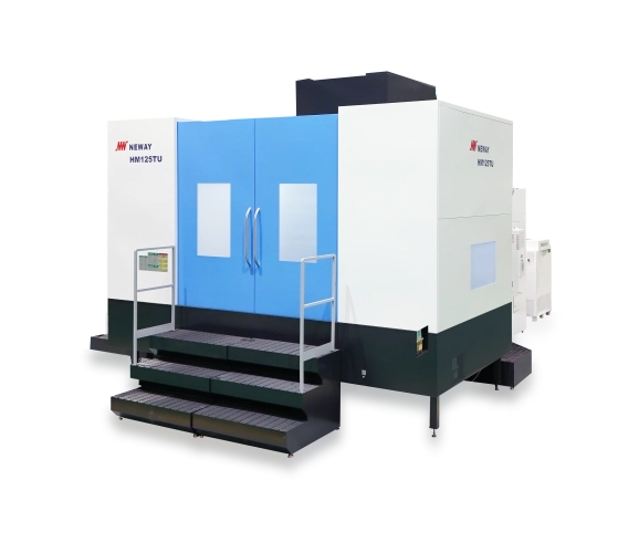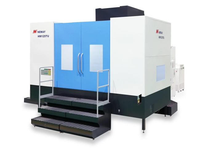 Horizontální obráběcí centra řady HM80TF / HM100TLU / HM125TU jsou jednopaletová 5-ti osá vysokorychlostní centra v provedení s otočně sklopnou hlavou v ose A a B. Rám s dvojitým sloupem zajišťuje mimořádnou tuhost a stabilitu při obrábění. Stroje jsou vybavena vysoce přesným otočným stolem, který umožňuje spolehlivé a přesné obrábění z více stran v jediném upnutí, velice přesné elektrovřeteno a lineární vedení ve všech třech osách.
