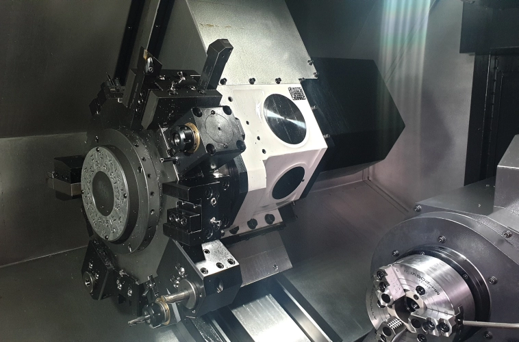 Výkonný, tuhý a přesný čtyřosý horizontální soustruh s Y- osou a poháněnými nástroji, vhodný pro složité díly z těžko obrobitelných materiálů. Max. průměr soustružené tyče 52 mm a max. délka soustružení 726 mm.
