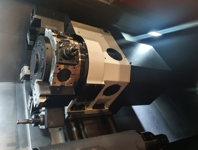 Výkonný, kompaktní a spolehlivý tříosý horizontální soustruh s max. délkou soustružení 2 119 mm, max. průměrem soustružené tyče 165,5 mm a poháněnými nástroji.
