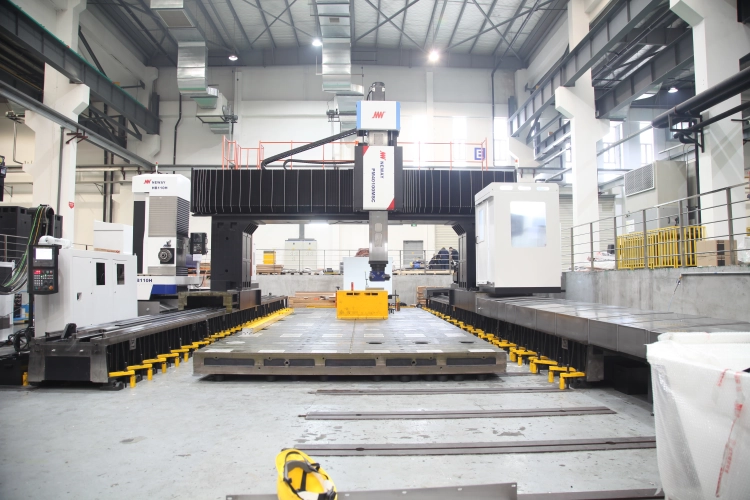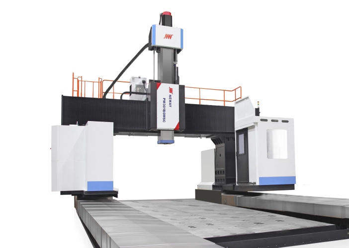 PM-MHZ představuje portálové obráběcí centrum s pohyblivým sloupem typu se spodním gantry, navržené pro přesné a stabilní obrábění rozměrných obrobků při zachování kompaktní zastavěné plochy stroje. Konstrukce vychází z pevného lože a pracovního stolu, zatímco pohyb v podélné ose je realizován pohybem sloupové části stroje. Toto řešení umožňuje efektivní využití výrobního prostoru a současně vysokou dynamickou stabilitu.