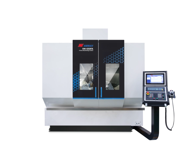 Vertikální 5-ti osá obráběcí centra modelové řady VM_FA patří mezi moderní obráběcí centra určená pro plynulé 5-ti osé obrábění tvarově složitých dílů při vysoké rychlosti. S 5-ti osami je možné provést komplexní obrábění na jedno upnutí materiálu. Tím se výrazně zkracuje doba obrábění a zároveň Vám pomůže udržet konkurence schopnost.