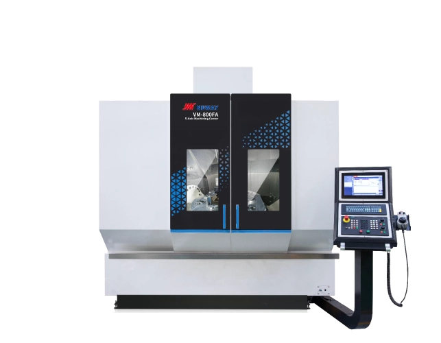 Vertikální 5-ti osá obráběcí centra modelové řady VM_FA patří mezi moderní obráběcí centra určená pro plynulé 5-ti osé obrábění tvarově složitých dílů při vysoké rychlosti. S 5-ti osami je možné provést komplexní obrábění na jedno upnutí materiálu. Tím se výrazně zkracuje doba obrábění a zároveň Vám pomůže udržet konkurence schopnost.