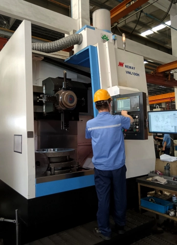 Vertikální dvouosý CNC soustruh s průměrem stolu 630 mm, otáčkami 600 ot./min. je poháněno motorem o výkonu 22 kW. Automatická nástrojová hlava s 8 pozicovou horizontálně (HK) umístěnou hlavou.